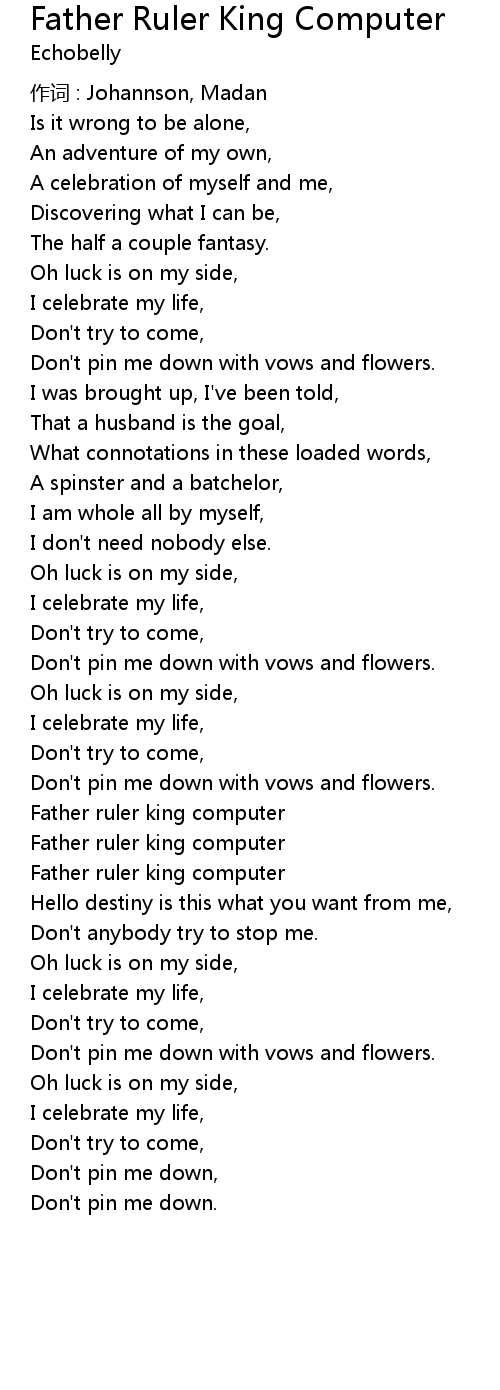 | Song | Father Ruler King Computer |