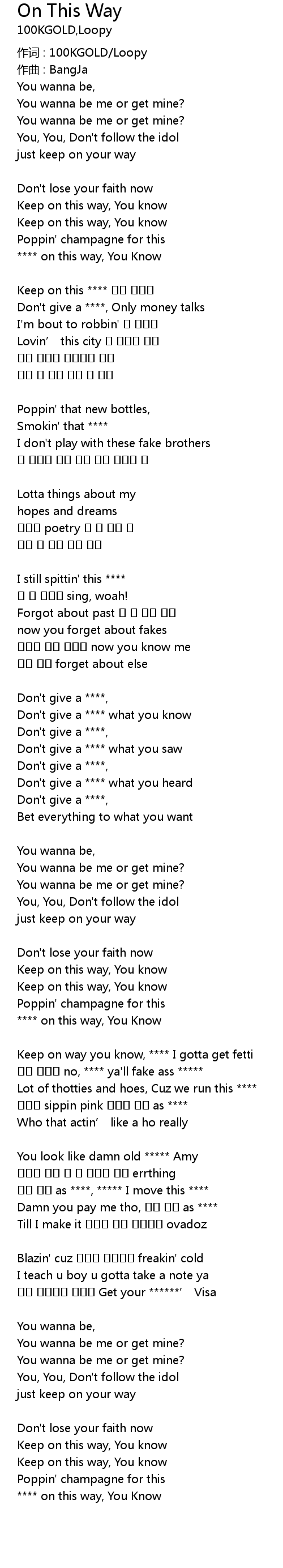 | Keep on this **** 누가 뭐래도 | |