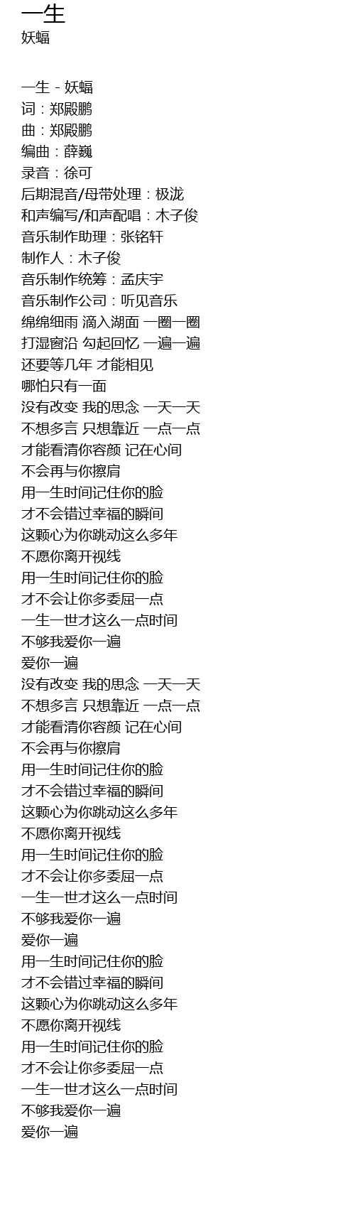 | 一生 - 妖蝠 | |