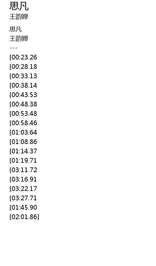 | [02:10.82][00:23.26] | 一步消失后一份愁 |