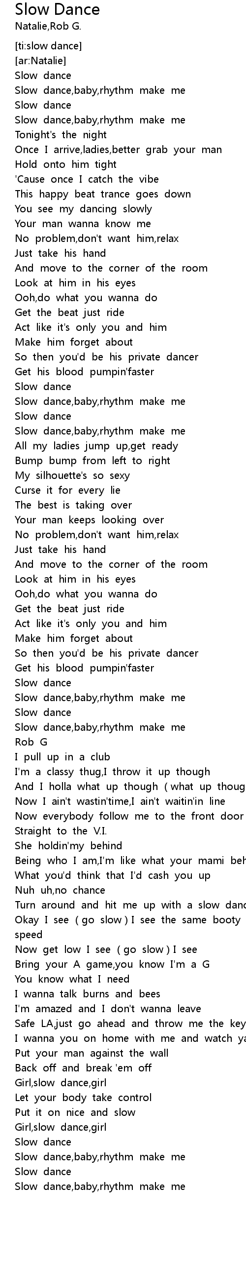 | [01:16.57] | Slow dance, baby, rhythm make me |