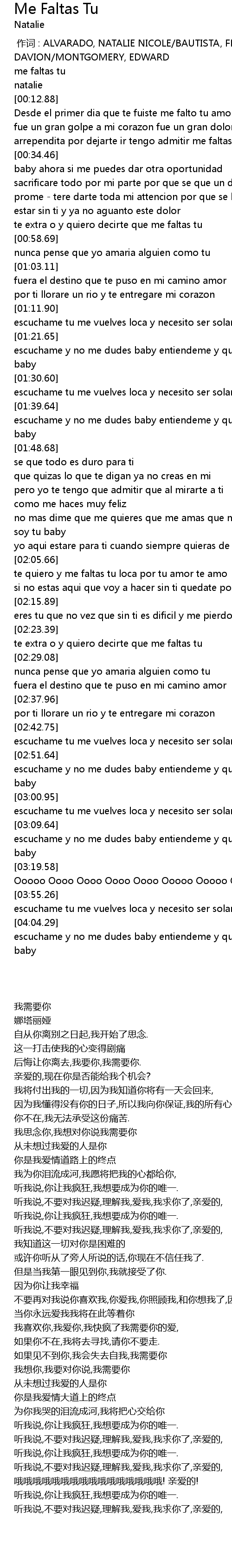 | [00:54.53] | te extra o y quiero decirte que me faltas tu |