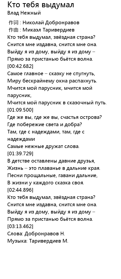 作词 : Николай Добронравов |