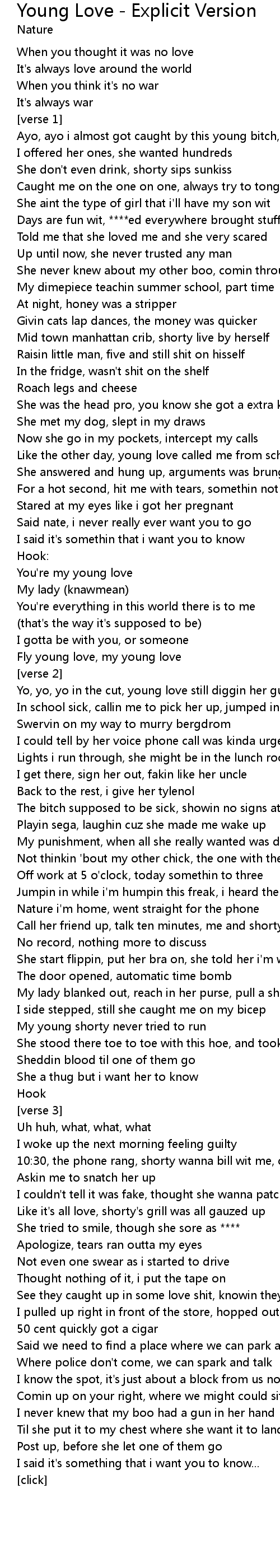 Yo, yo, yo in the cut, young love still diggin her guts |