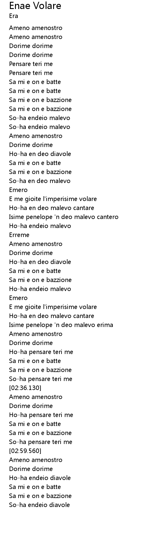 | [00:46.980] | E me gioite l' imperisime volare |