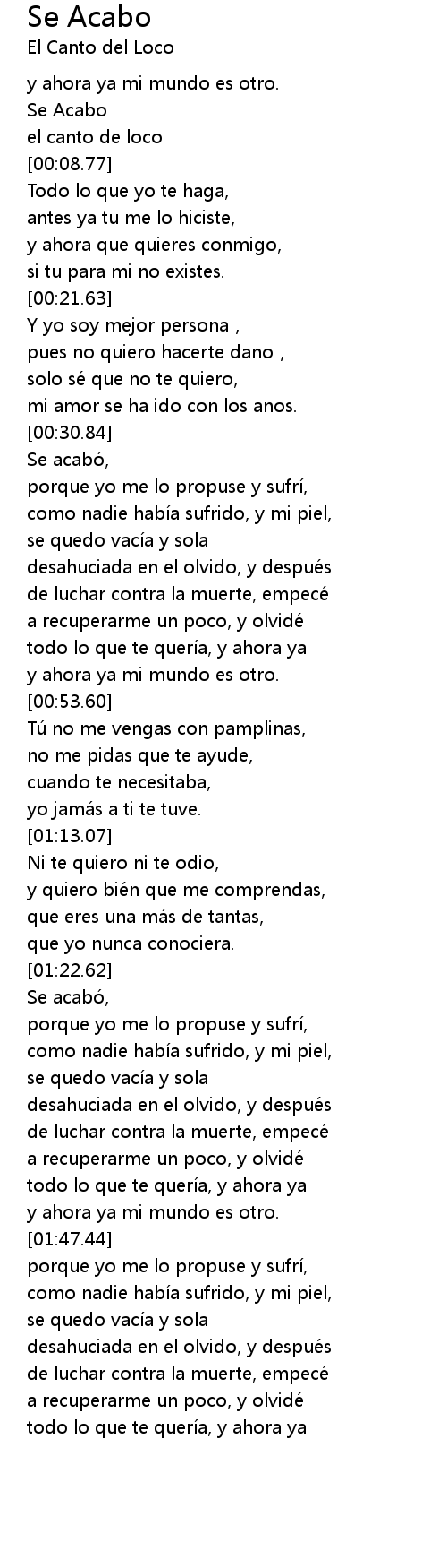 | [01:39.60] | todo lo que te queri a, y ahora ya |