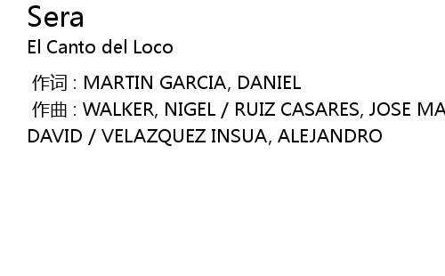 | [00:00.000] | 作曲 : WALKER, NIGEL / RUIZ CASARES, JOSE MARIA / OTERO MARTIN, DAVID / VELAZQUEZ INSUA, ALEJANDRO |