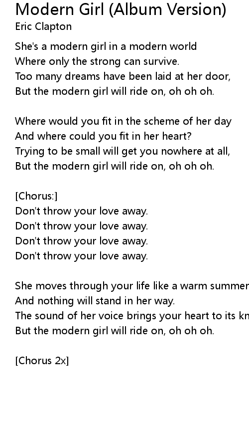 But the modern girl will ride on, oh oh oh. |