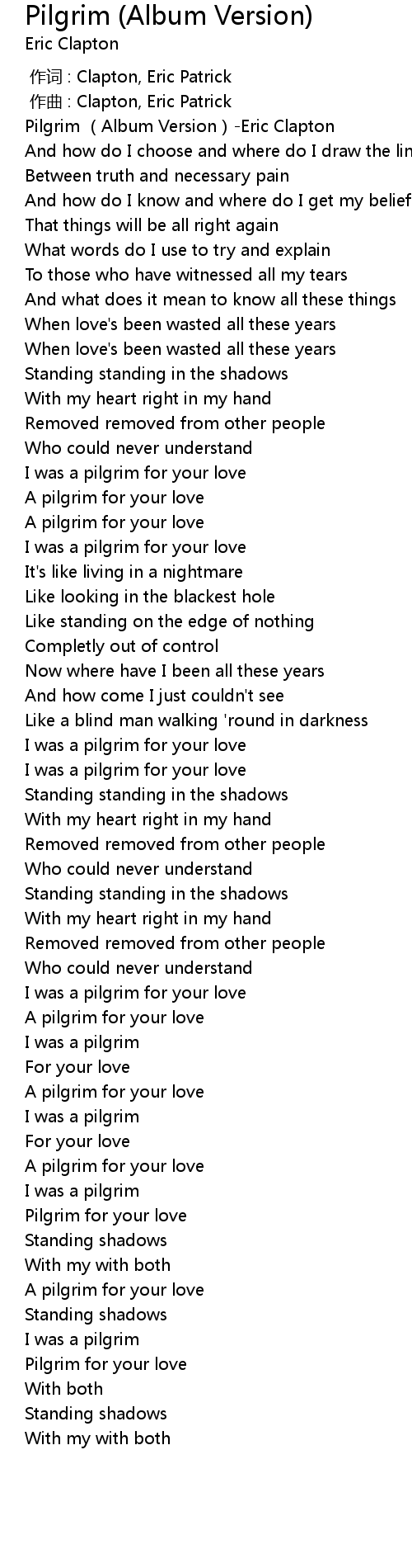 | [00:00.282] | Pilgrim (Album Version)-Eric Clapton |