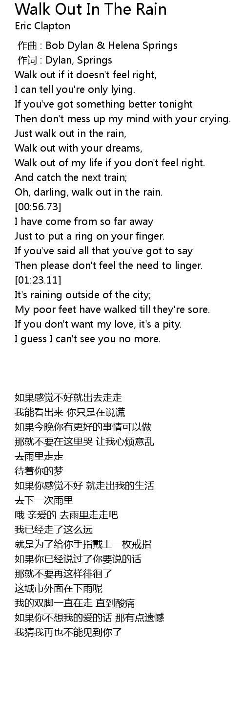 | [00:47.60] | Oh, darling, walk out in the rain. |