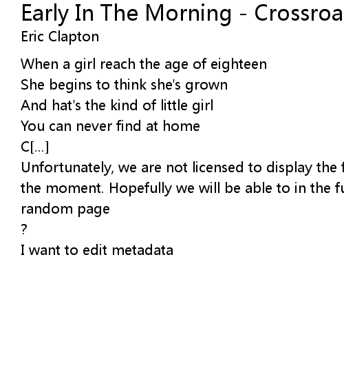 | Song | Early In The Morning - Crossroad 2 Box/Set Version |
