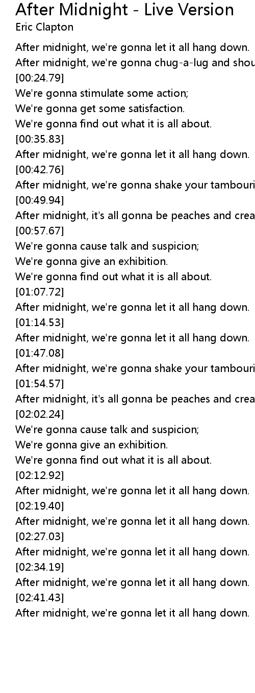 After midnight, we're gonna let it all hang down. |