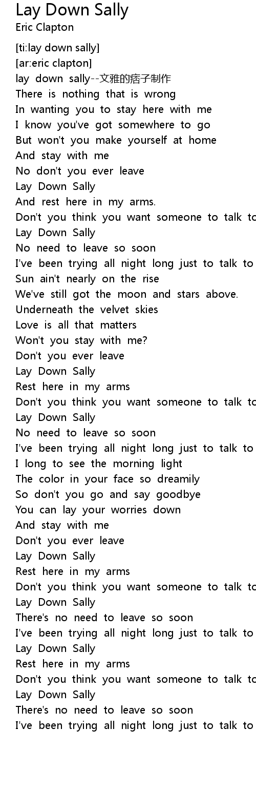 | [00:01.130] | lay down sally--文雅的痞子制作 |