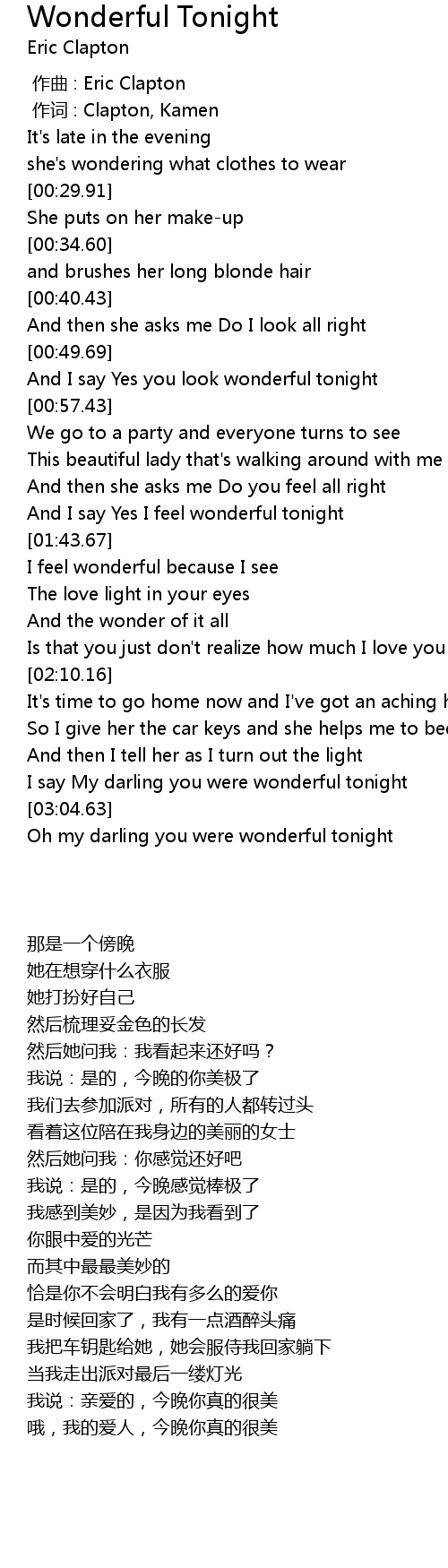 | [00:50.44] | And I say Yes you look wonderful tonight |