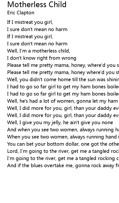 Well, I'm a motherless child, |