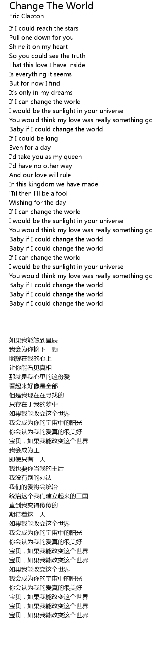 Baby if I could change the world |