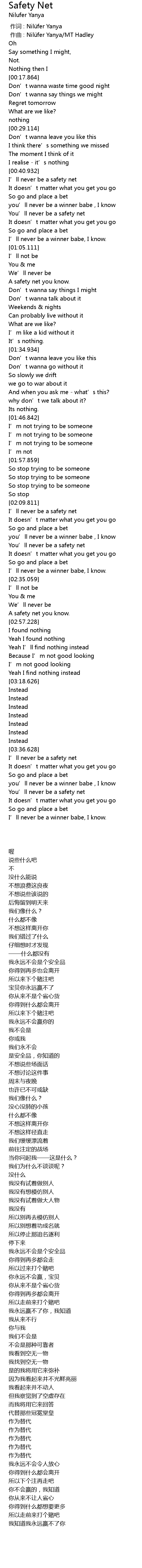 | [00:53.431] | You' ll never be a safety net |