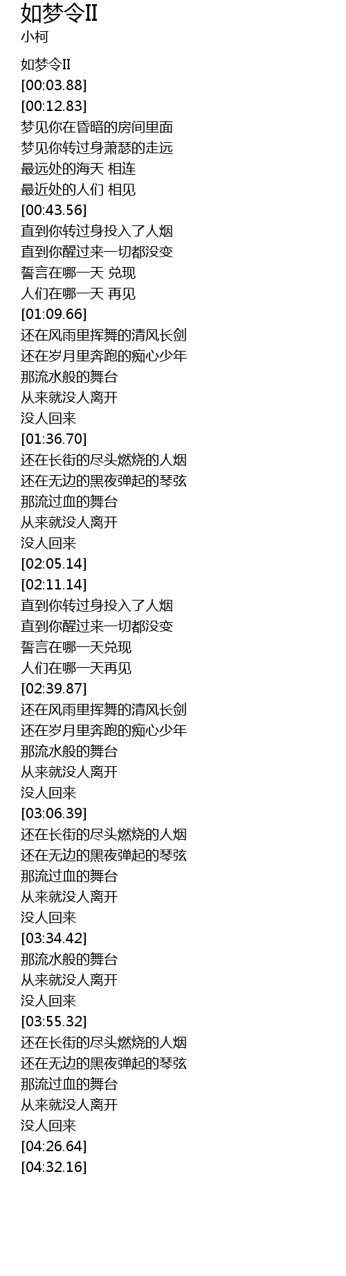 | [01:37.04] | 还在长街的尽头燃烧的人烟 |