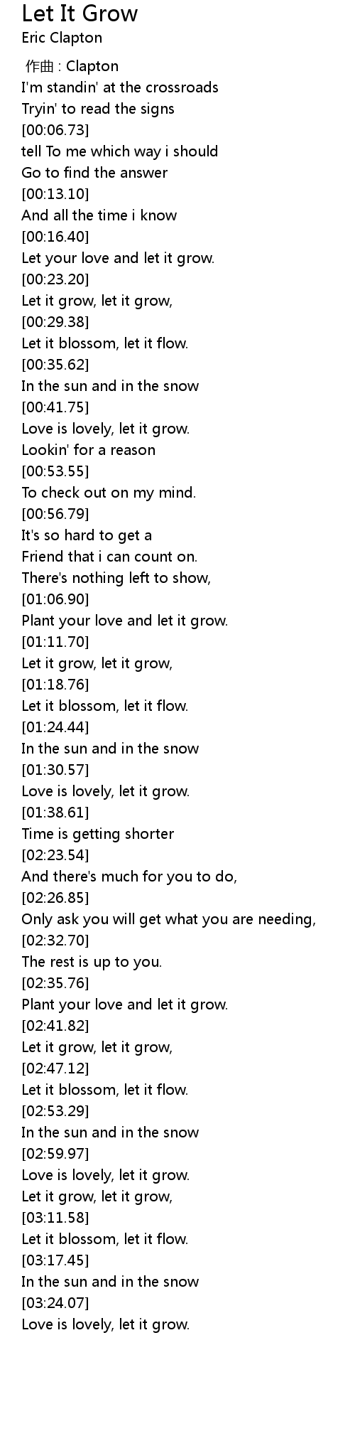 | [02:43.31] | Let it grow, let it grow, |