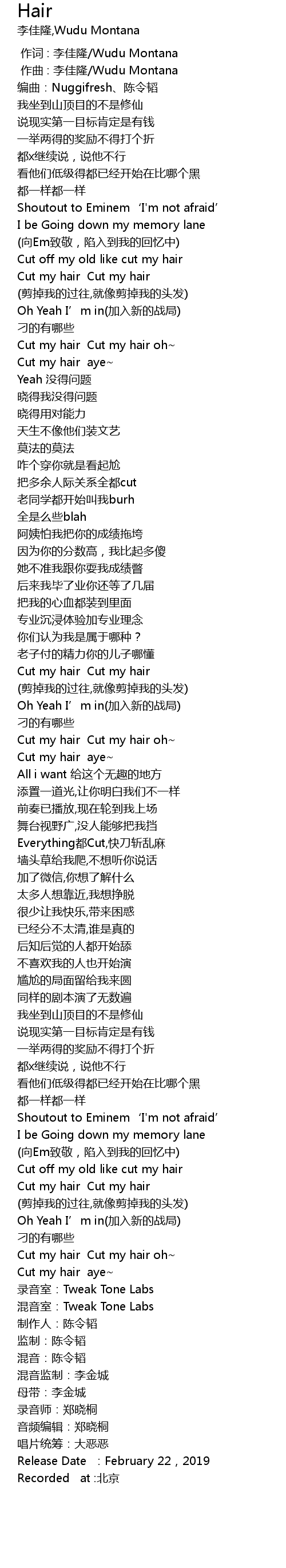 | [00:48.38] | Cut my hair Cut my hair oh~ |