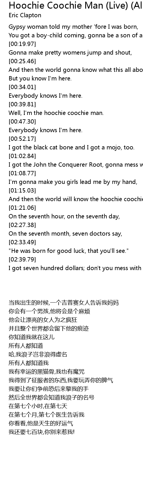 Well, I'm the hoochie coochie man. |
