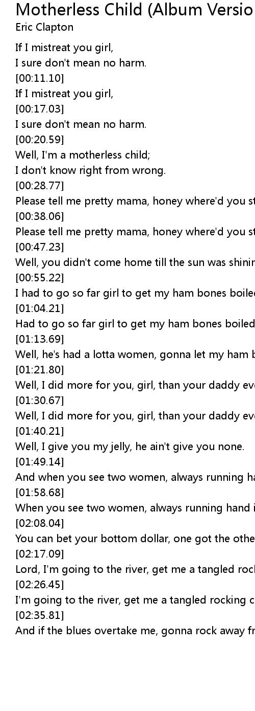 Well, I'm a motherless child; |