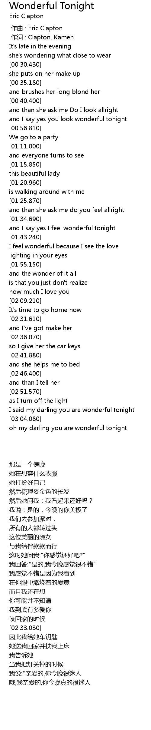 | [02:56.490] | I said my darling you are wonderful tonight |