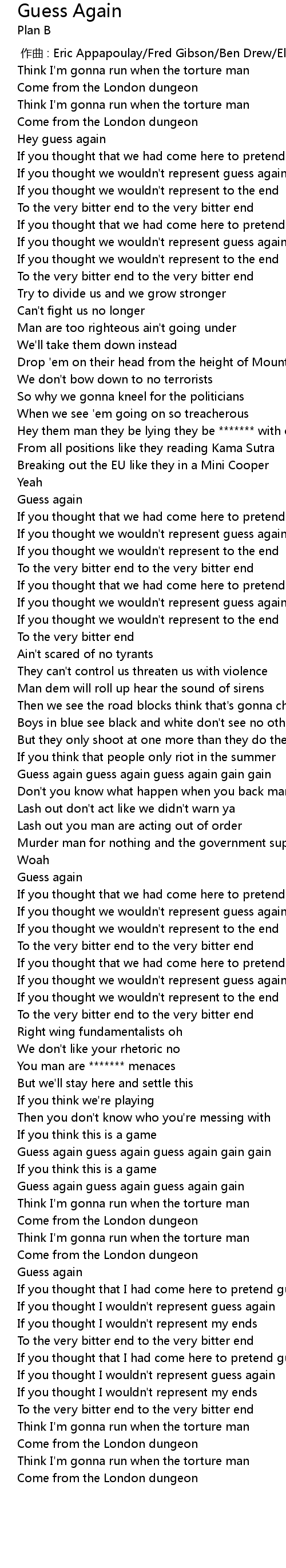 | [02:35.19] | Guess again guess again guess again gain gain |