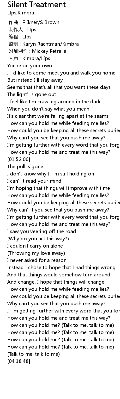| [03:55.68] | How can you hold me? Talk to me, talk to me |
