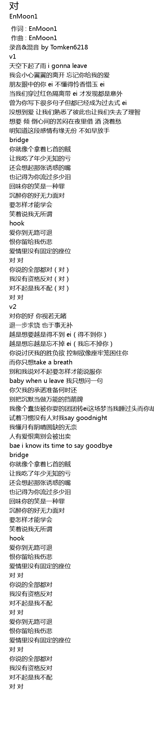 | [00:00.000] | 作词 : EnMoon1 |