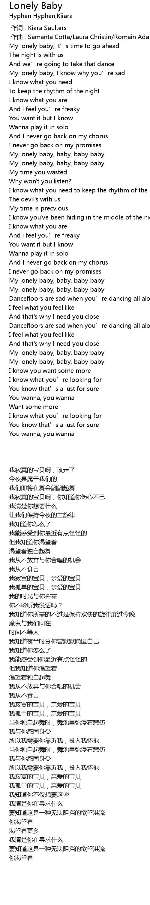 | [01:56.77] | My lonely baby, baby, baby baby |