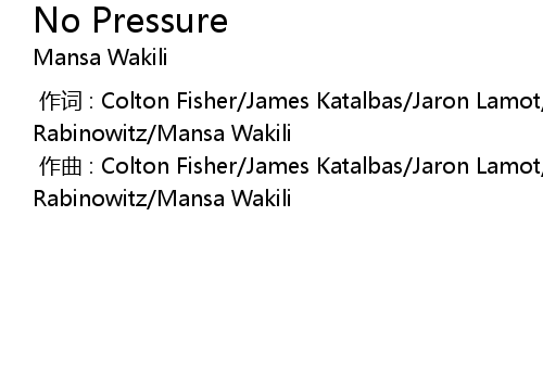 | [00:00.000] | 作曲 : Colton Fisher/James Katalbas/Jaron Lamot/Jason Rabinowitz/Mansa Wakili |