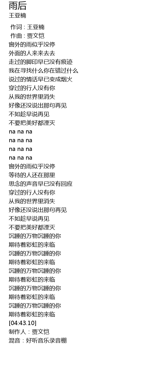 | [04:54.03] | 混音:好听音乐录音棚 |