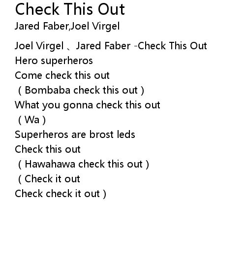 | [00:01.597] | Joel Virgel Jared Faber Check This Out |