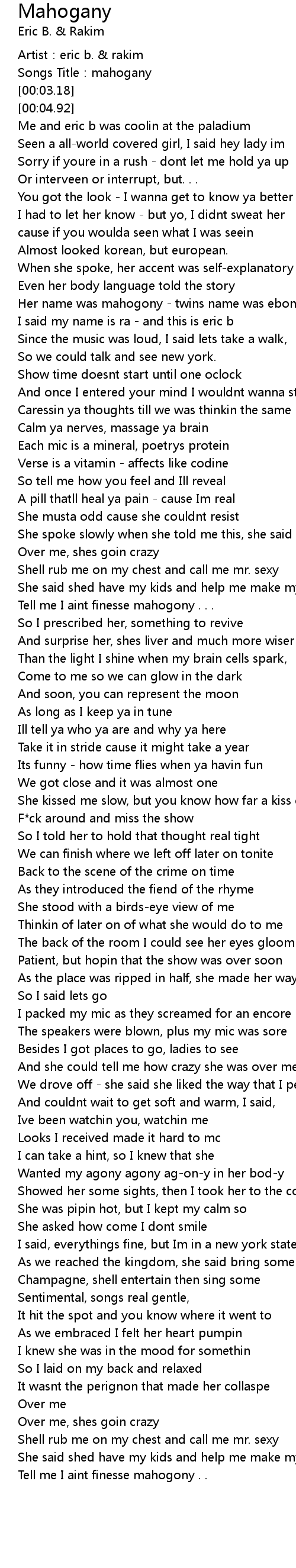 | [01:29.32] | Tell me I aint finesse mahogony . . . |