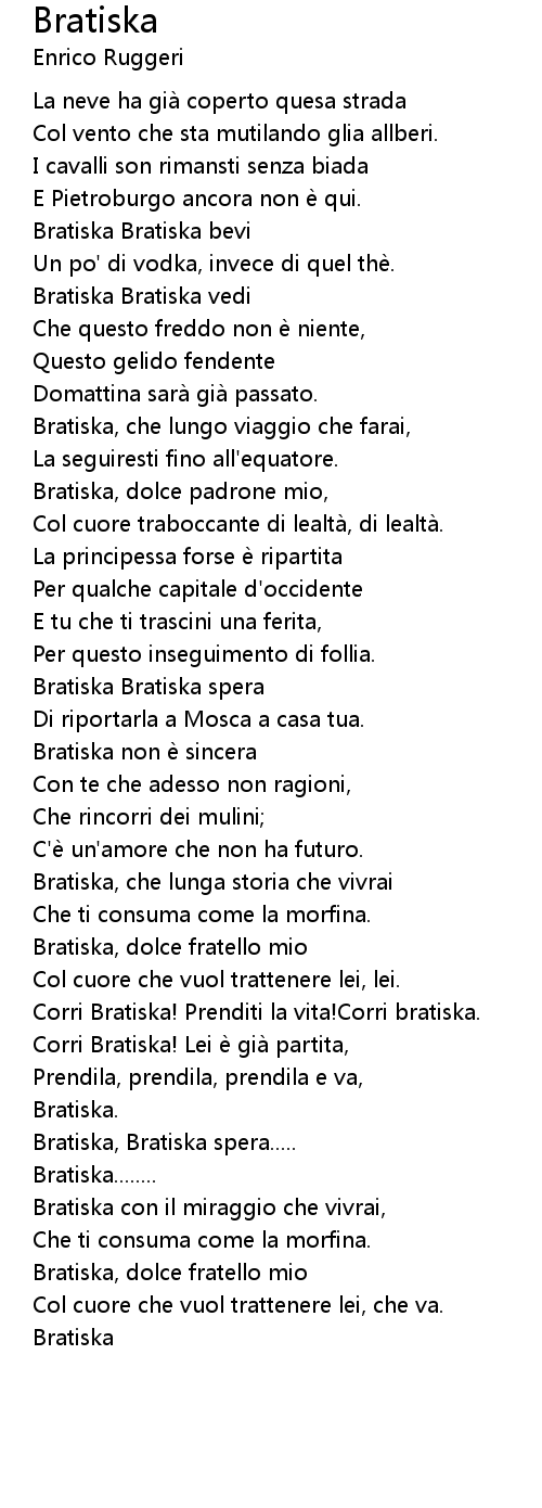 | Corri Bratiska! Prenditi la vita! Corri bratiska. | |