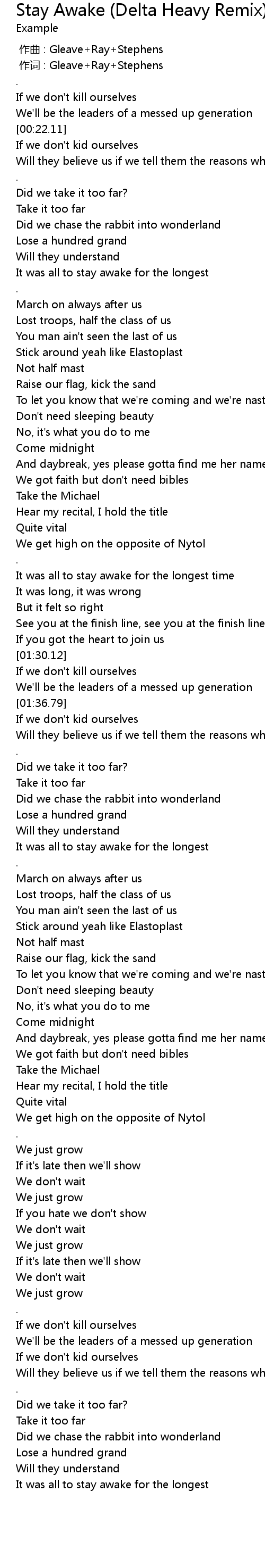 | [00:00.00] | 作曲 : Gleave+Ray+Stephens |