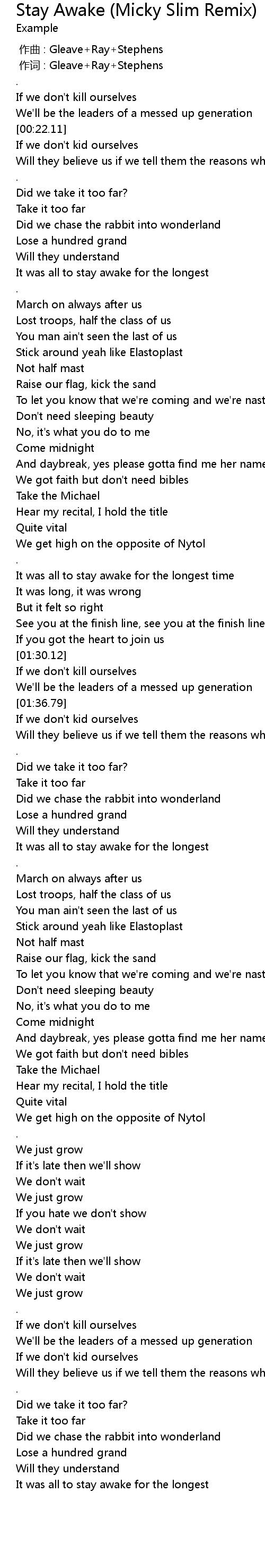 | [00:00.00] | 作曲 : Gleave+Ray+Stephens |