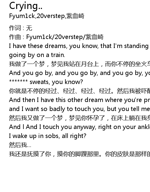 | 然后我... 我还是抚摸了你,摸你的脚踝那里。你的皮肤是那样的柔软,使得我在哭泣中醒来。 |