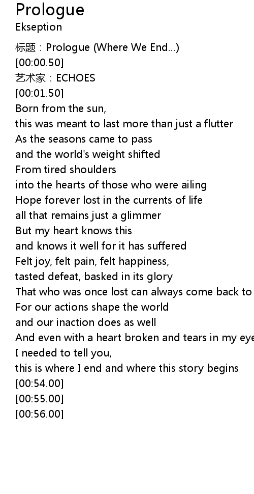 | [00:00.00] | 标题:Prologue (Where We End...) |