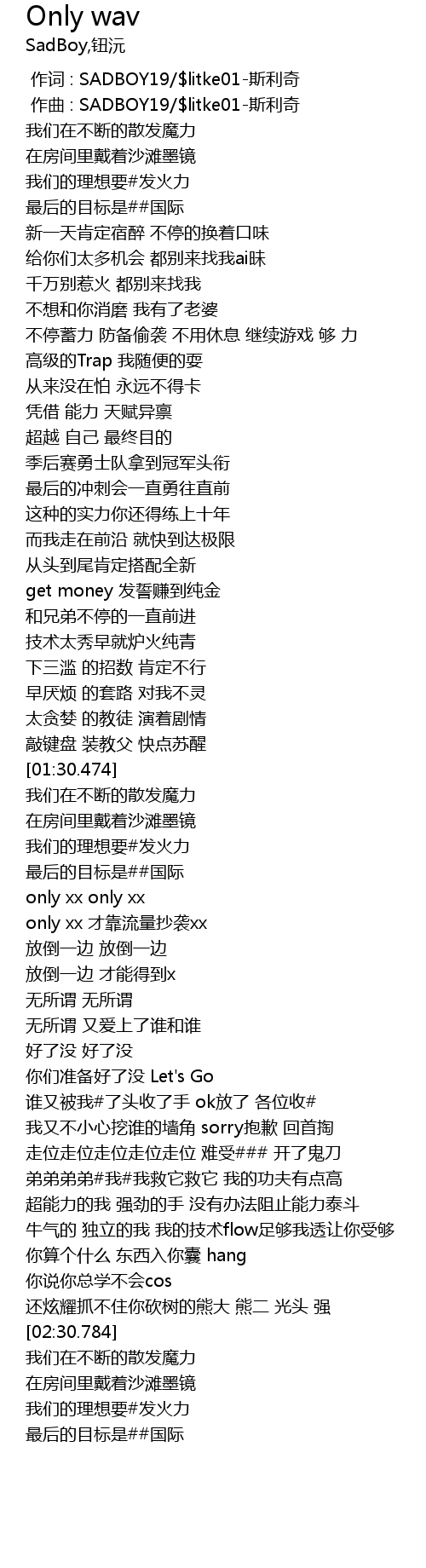 | [00:00.000] | 作词 : SADBOY19/$litke01-斯利奇 |