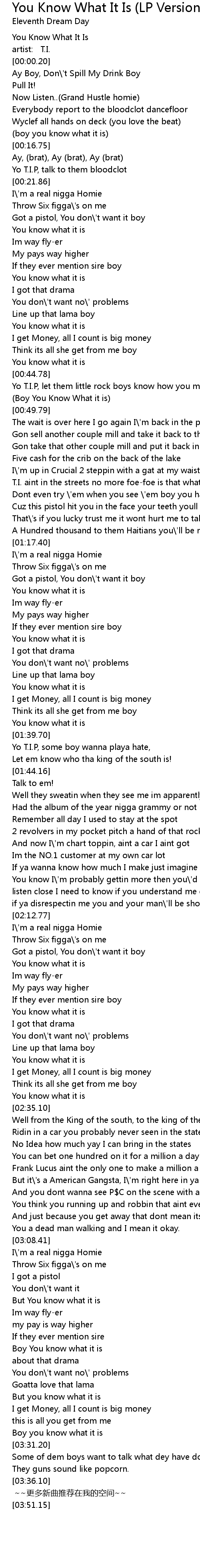 | [00:00.10] | artist: T.I. |