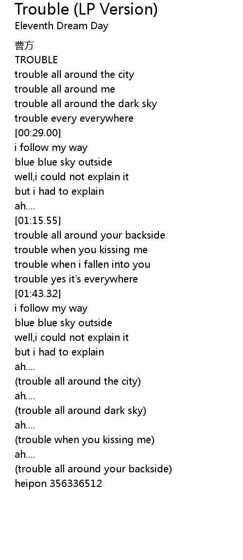 | [01:31.16] | trouble when you kissing me |