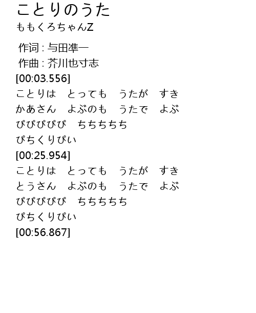 | [00:36.736] | とうさん よぶのも うたで よぶ |