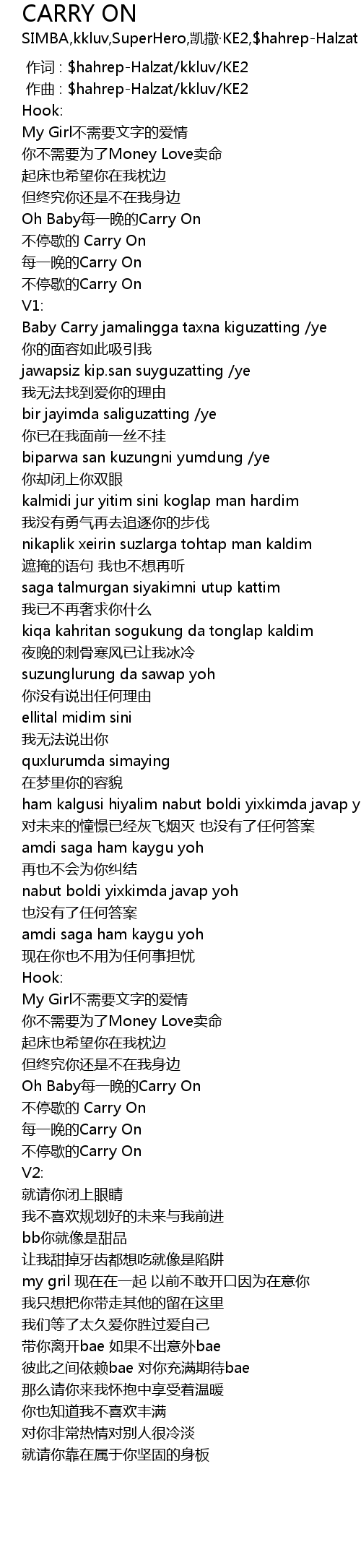 | [02:01.231] | Oh Baby měi yī wǎn de Carry On |