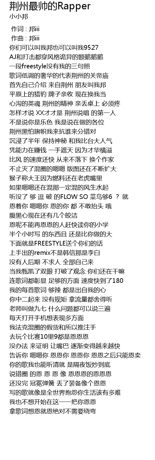 | [00:41.894] | 怎样才说 XX才才是 荆州说唱 的第一人 |