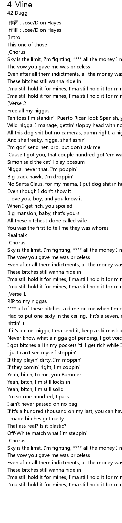 | [02:30.22] | I'ma still hold it for mines, I'ma still hold it for mines |