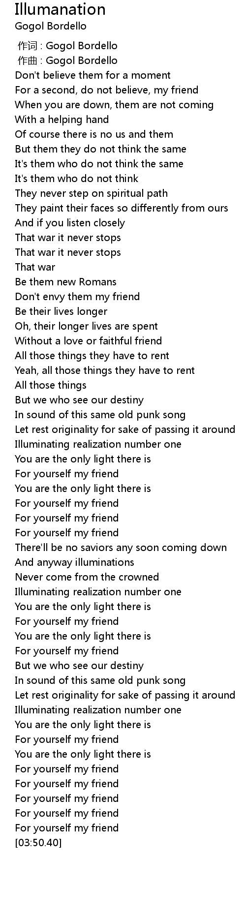 | [03:27.34] | For yourself my friend |