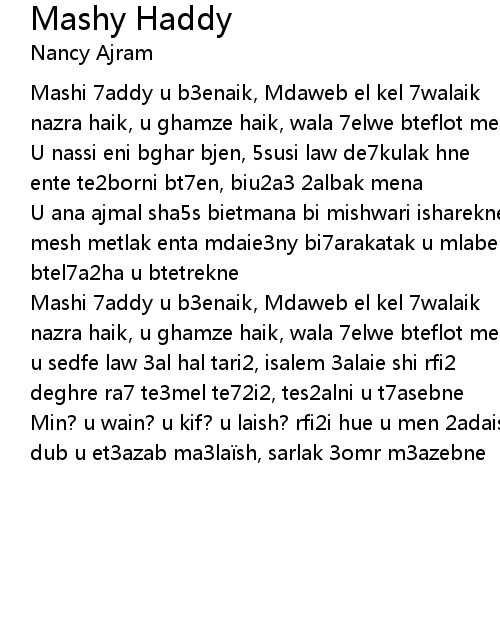 | Mashi 7addy u b3enaik, Mdaweb el kel 7walaik | |