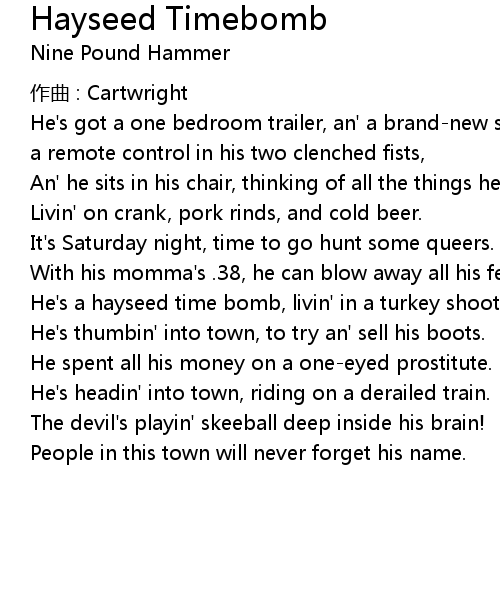 | He's a hayseed time bomb, livin' in a turkey shoot. | |